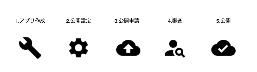 - 一度公開したアプリが頻繁に非公開になると、利用者の混乱を生む可能性がございますので、基本的に一度公開したものは提供を終了させるまで公開状態のままにしてください。