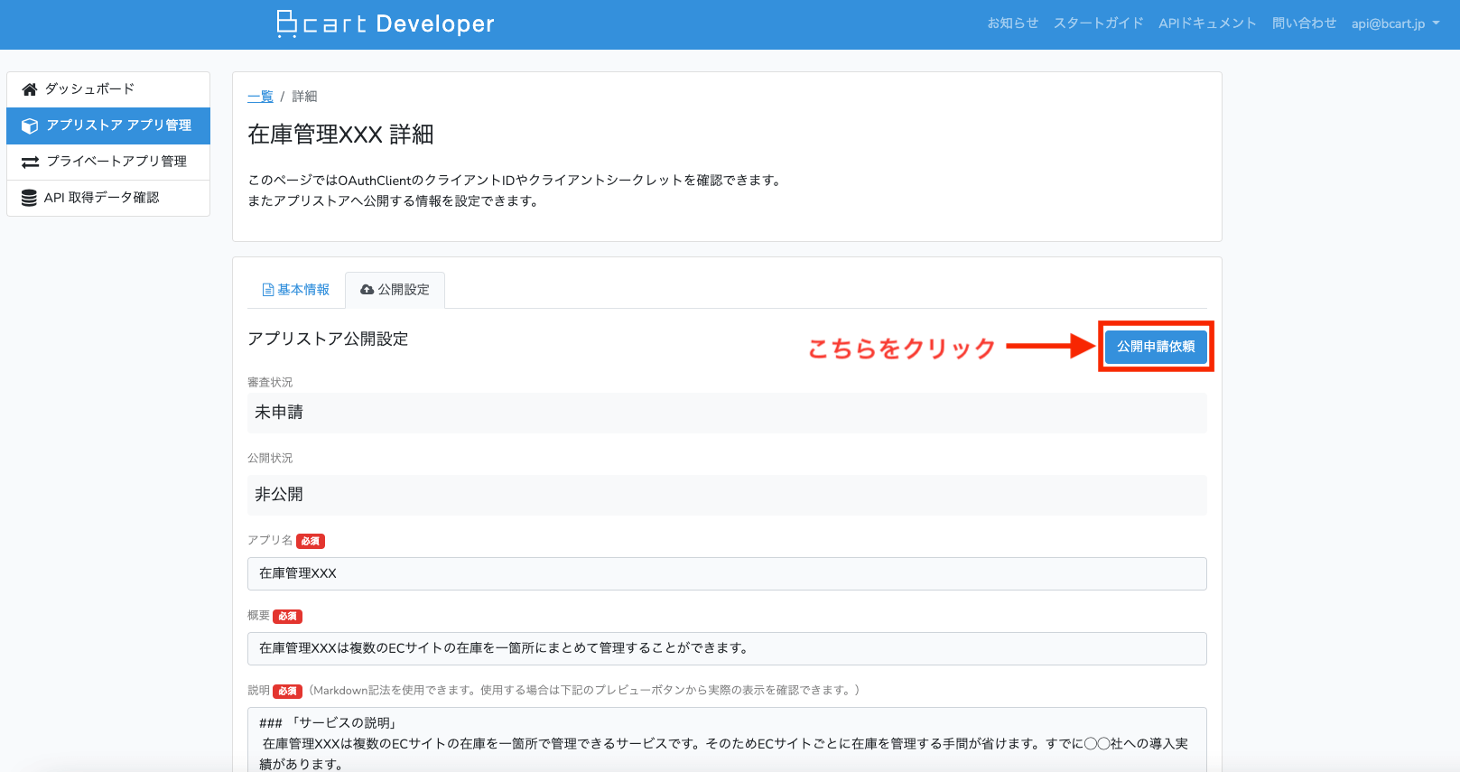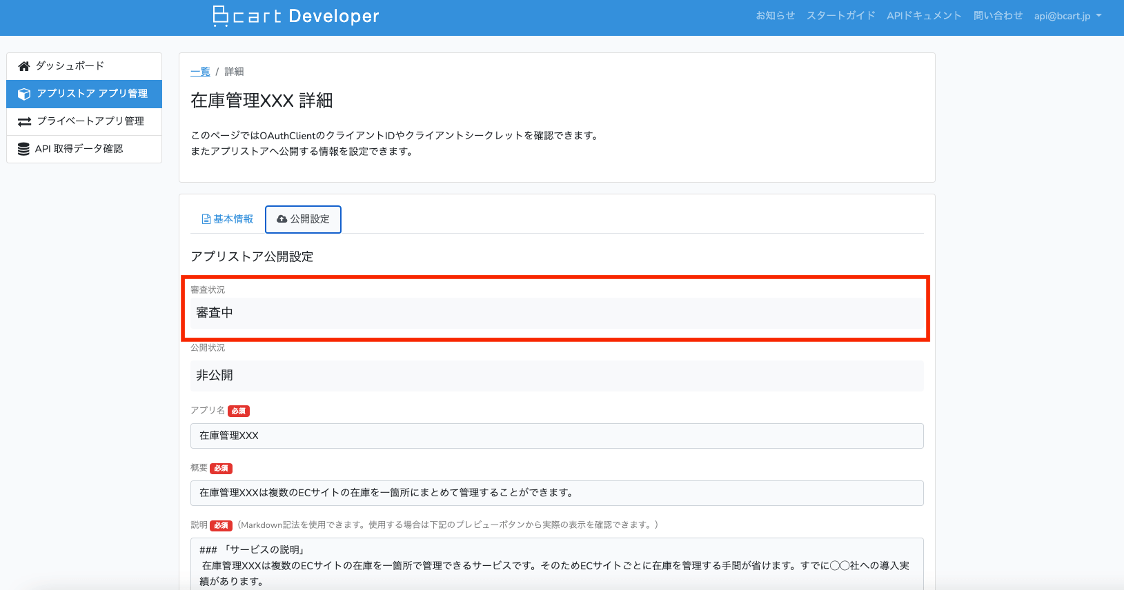この段階でBカートアプリストアへ公開できるようになります。