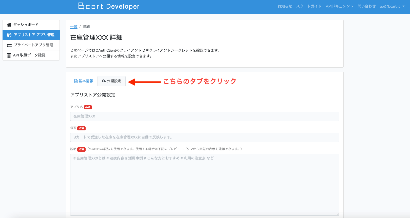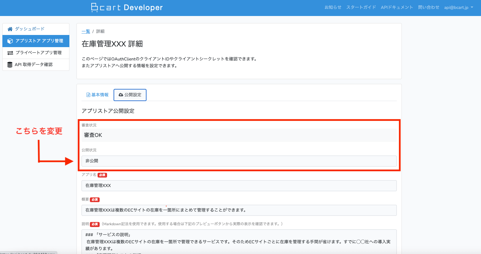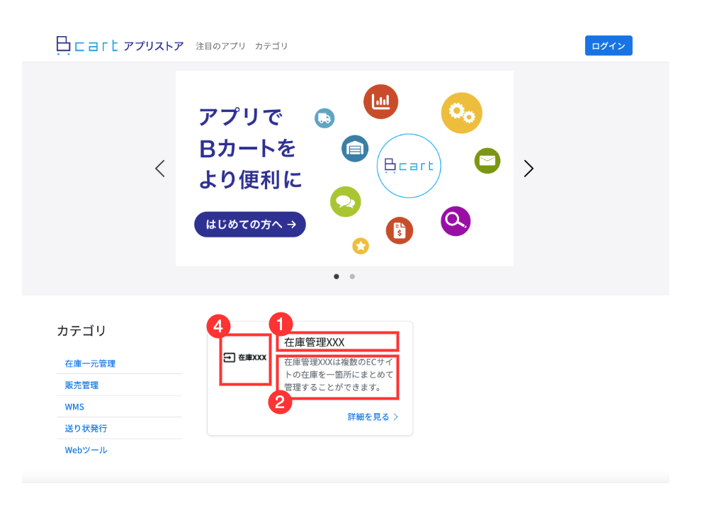 Bカートアプリストアの一覧、詳細には公開設定の内容が反映されます。